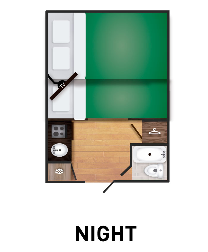 • Double bed: 1,90 x 1,20 meters